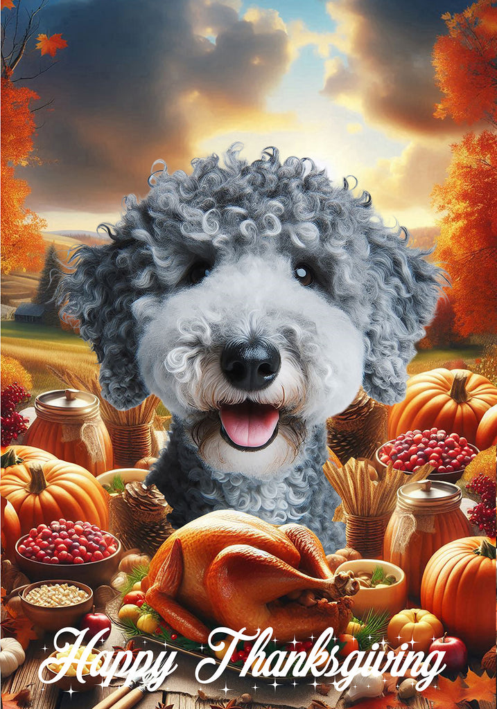Bedlington Terrier Blue - Best of Breed Thanksgiving Outdoor House and Garden Flag