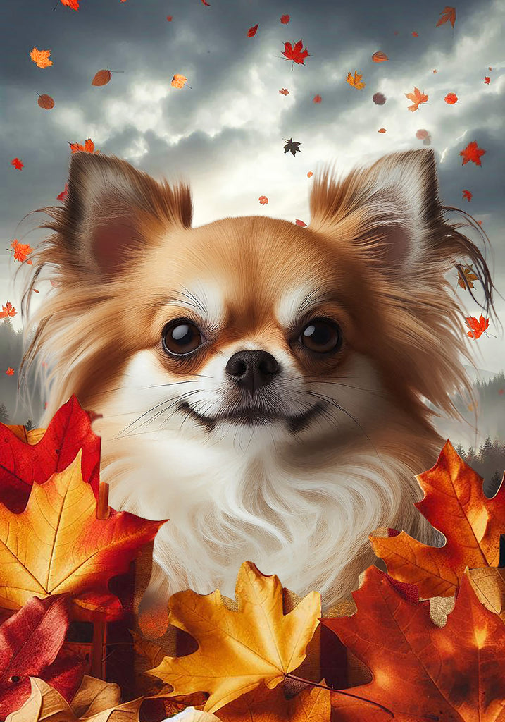 Chihuahua Fawn Longhaired - Best of Breed Thanksgiving Outdoor House and Garden Flag
