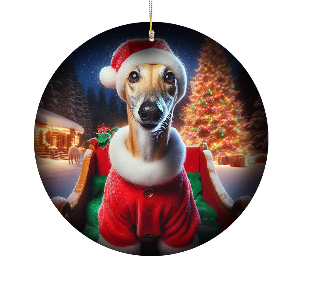 Greyhound Fawn - Best of Breed DCR Christmas Tree Porcelain Ornament Double Sided