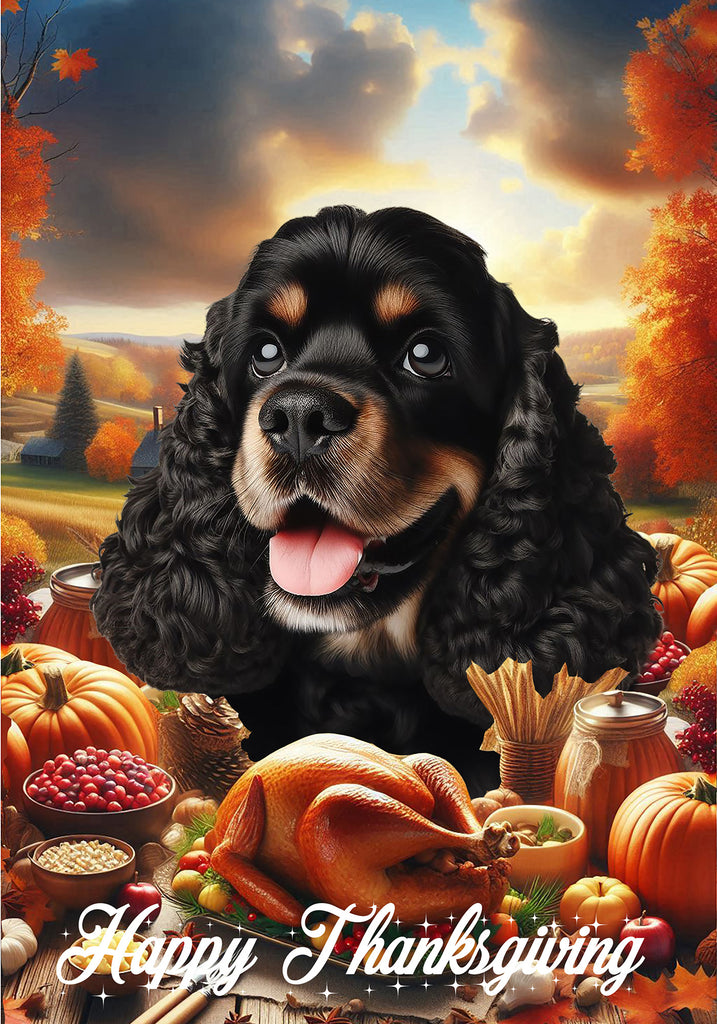 Cocker Spaniel Black/Tan - Best of Breed Thanksgiving Outdoor House and Garden Flag