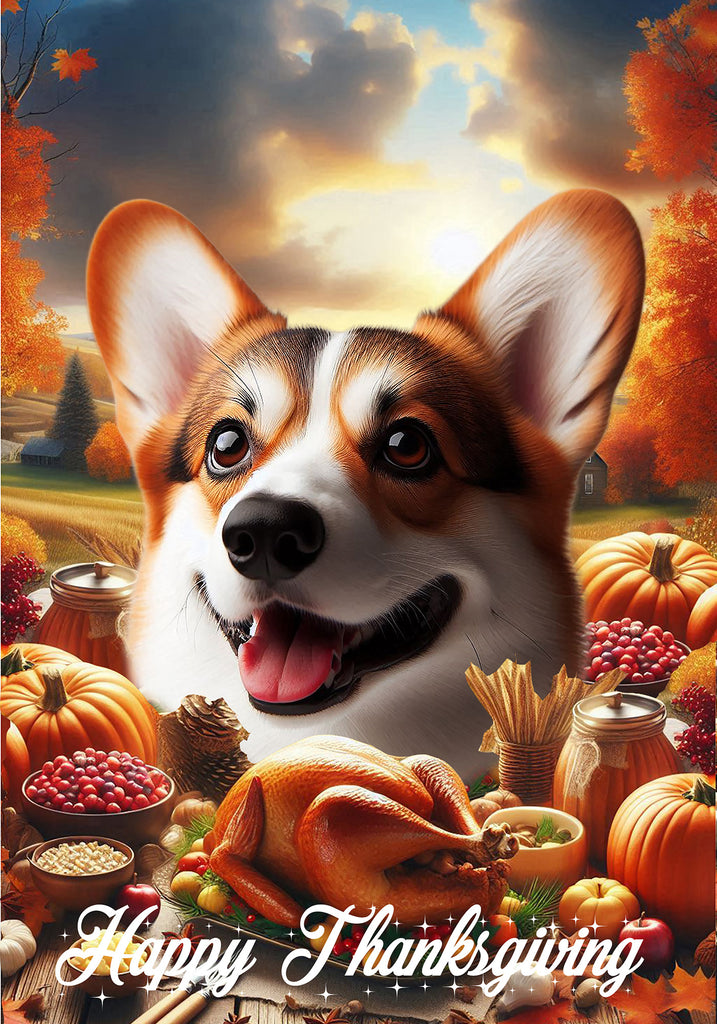 Corgi Pembroke Welsh Red/White - Best of Breed Thanksgiving Outdoor House and Garden Flag