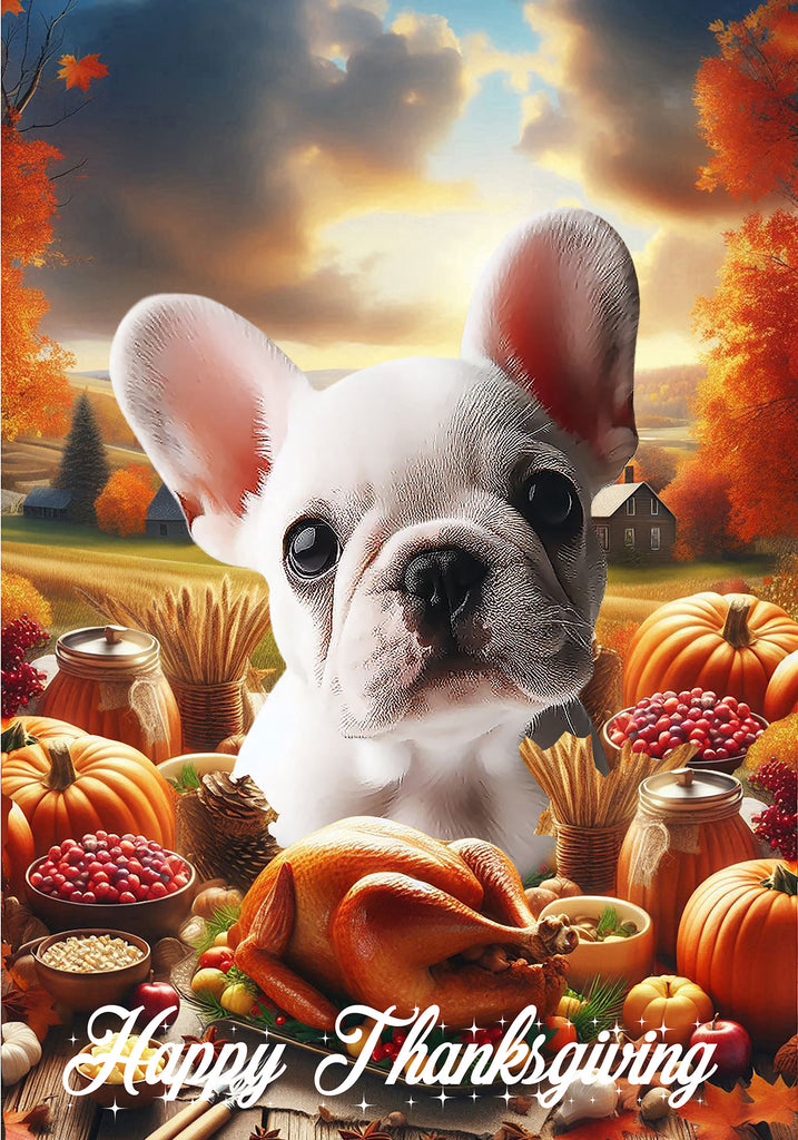 French Bulldog White - Best of Breed Thanksgiving Outdoor House and Garden Flag