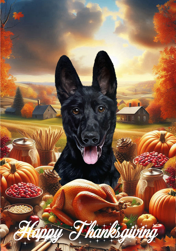 German Shepherd Black - Best of Breed Thanksgiving Outdoor House and Garden Flag