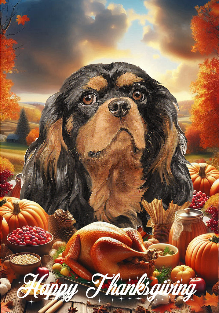 Cavalier King Charles Black/Tan - Best of Breed Thanksgiving Outdoor House and Garden Flag