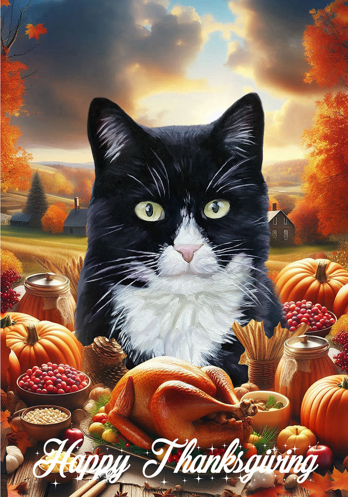 Tuxedo Cat - Best of Breed Thanksgiving Outdoor House and Garden Flag